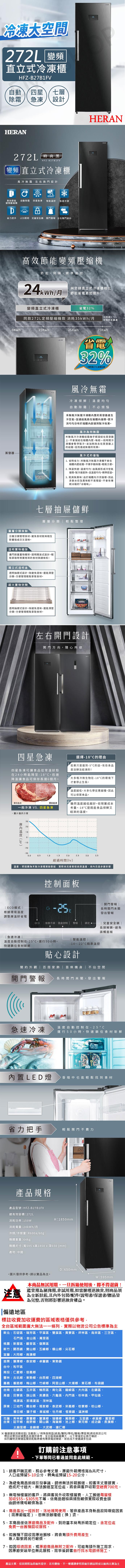 【禾聯HERAN】272L變頻直立式冷凍櫃 HFZ-B27B1FV