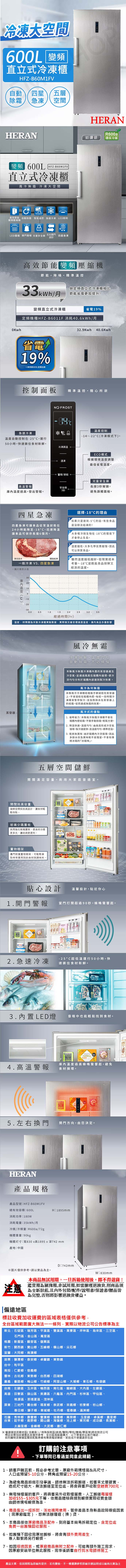 【禾聯HERAN】600L變頻直立式冷凍櫃 HFZ-B60M1FV