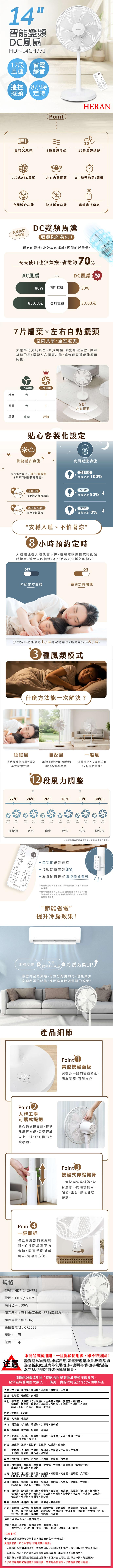 【禾聯HERAN】14吋智能變頻DC風扇 HDF-14CH771