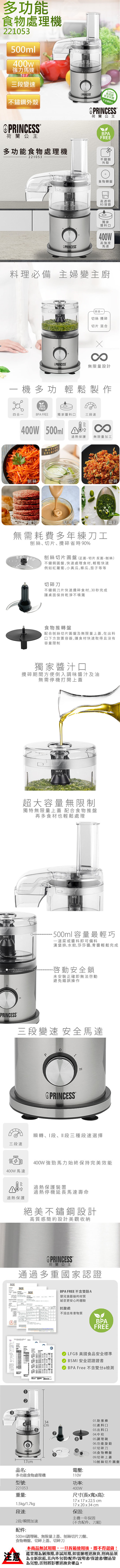 【荷蘭公主PRINCESS】500ml多功能食物處理機 221053