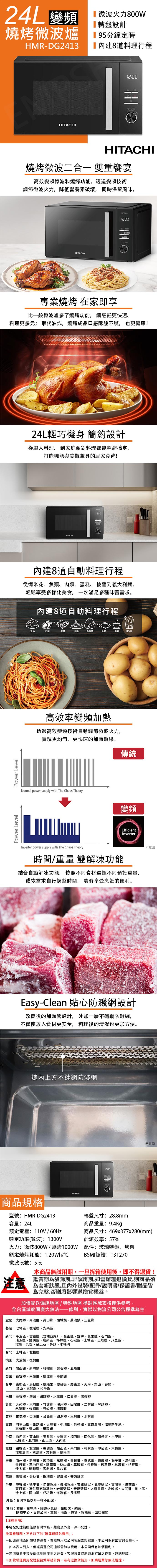 【日立HITACHI】 24L變頻燒烤微波爐 HMR-DG2413